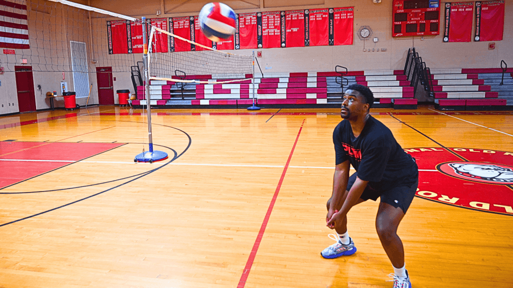 Shuffling Bump – Player 1 tosses an underhand ball to space, so Player 2 must move to bump the ball back properly.